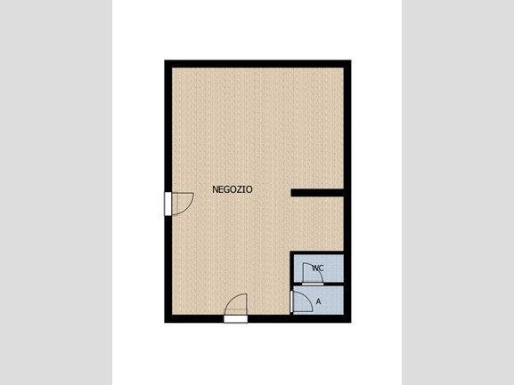 L'immobile, accessibile da due ingressi, è composto da un unico grande vano molto luminoso e da un bagno con antibagno.