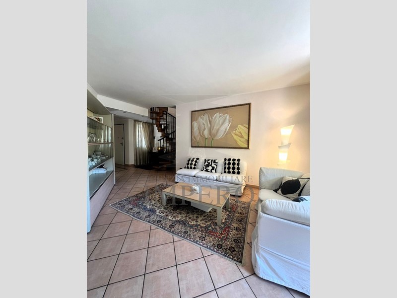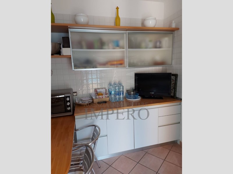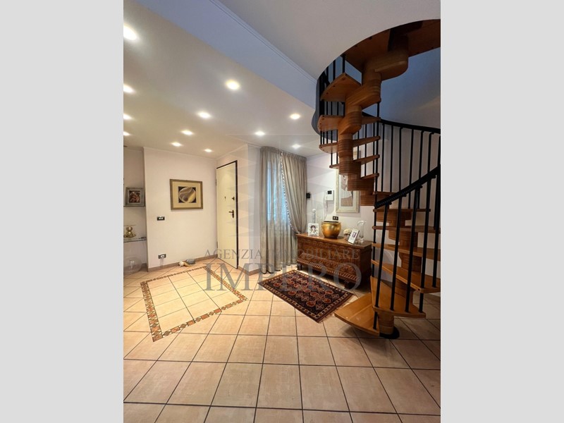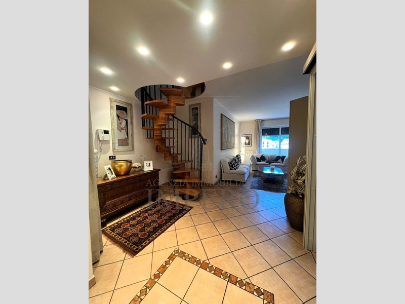 Rif. 22881. Camporosso (IM). In una posizione tranquilla e comoda ai centri commerciali, a pochi passi dal mare, proponiamo un ampio appartamento pentalocale disposto su due livelli, situato al secondo e ultimo piano di un edificio con ascensore. L'immobile è in ottime condizioni interne. Al secondo piano della proprietà troviamo un ingresso spazioso, una cucina abitabile, una sala da pranzo, un soggiorno, una prima camera da letto, un bagno di servizio con doccia e due terrazzi. Una scala a chiocciola conduce al piano superiore, dove si sviluppa la zona notte composta da altre due camere da letto, una delle quali con cabina armadio, un bagno padronale con vasca idromassaggio e altri due terrazzi. Il riscaldamento è autonomo e le spese condominiali sono contenute. Nel prezzo di vendita è incluso un garage di 20 mq, con la possibilità di acquistare separatamente un altro box auto singolo di 15 mq.