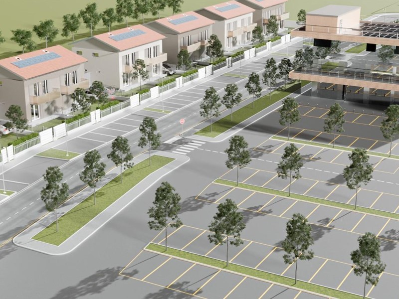 Complesso edilizio Residenziale di Nuova Realizzazione composto da Villette Bifamiliari di Ampia Metratura e n° 4 Appartamenti (2 al piano terra, 2 al piano primo) ciascuno con Giardino in proprietà esclusiva accessibile da ingresso indipendente. Il tutto si svilupperà all'interno di nuove viabilità e parcheggi, oltre a due parchi verdi pubblici e attrezzati di circa complessivi 6.000 mq. Tutti gli immobili in oggetto sono dotati di impianti di condizionamento, ventilazione meccanica controllata e controllo dell'umidità, infissi in vetro-camera in rispetto delle vigenti norme in materia di contenimento energetico, cappotto esterno con sistema isolante, ed interno con strato di sughero. APPARTAMENTI € 285.000 VILLETTE DA € 445.000