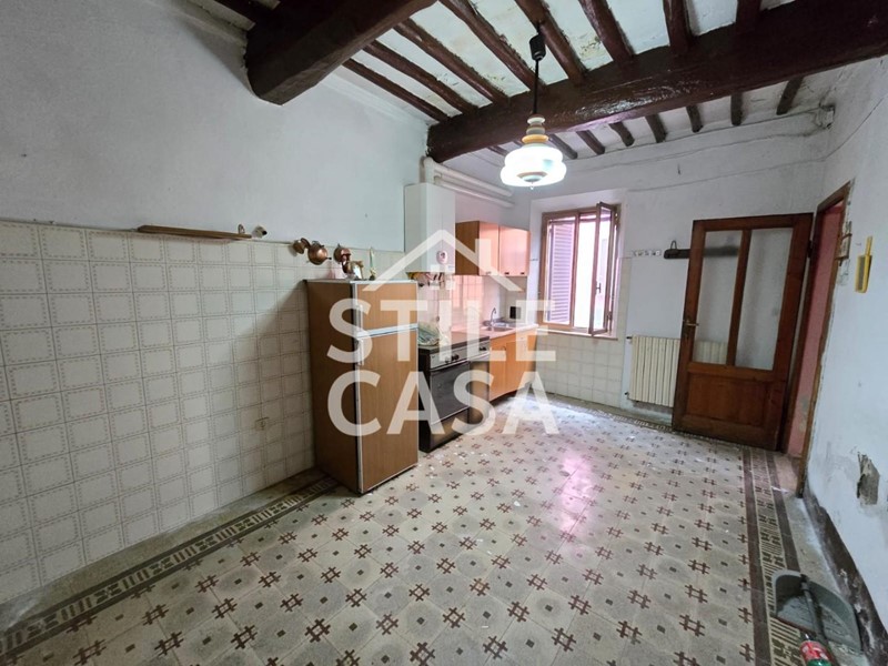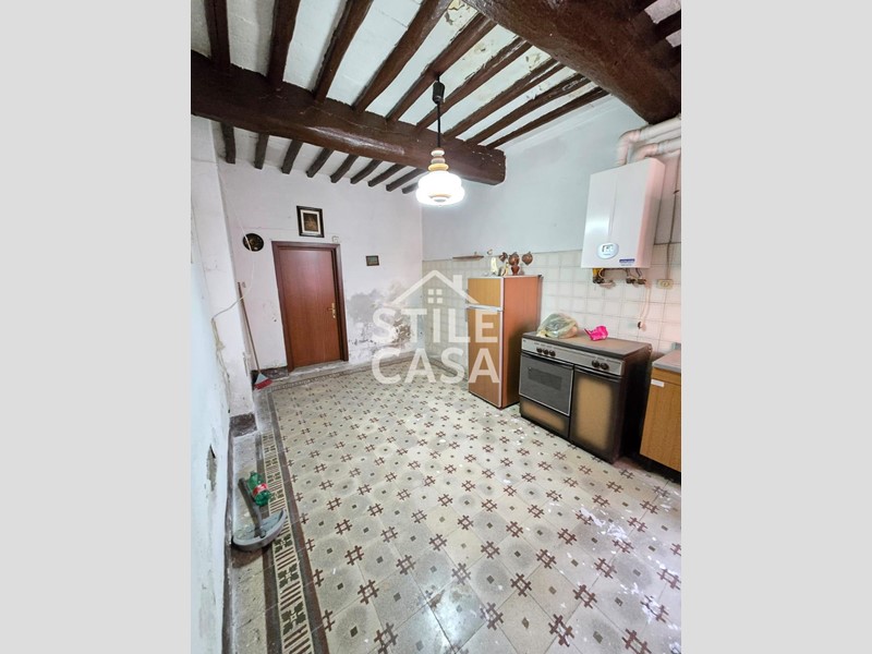 Orentano - Castelfranco di Sotto in zona semicentrale vicina al centro del paese e ai suoi servizi, vendesi in corte, terratetto centrale. L'abitazione ha l'ingresso principale su strada, ed è composta al piano terra da ingresso, cucina soggiorno con camino, ripostiglio, soggiorno, al primo piano raggiungibile da rampa di scale si trova la zona notte composta da una camera matrimoniale e due ampie camere medie oltre bagno con doccia e finestra. A corredo dell'abitazione, in aderenza si ha una grande cantina con lavanderia/wc, e poco distante dalla casa, si trova una resede pavimentata ad uso posto auto, privata con accesso diretto e pedonale al giardino esclusivo di circa 870 mq ove sono presenti degli annessi ad uso ripostiglio per circa 30 mq. L'immobile è abitabile.