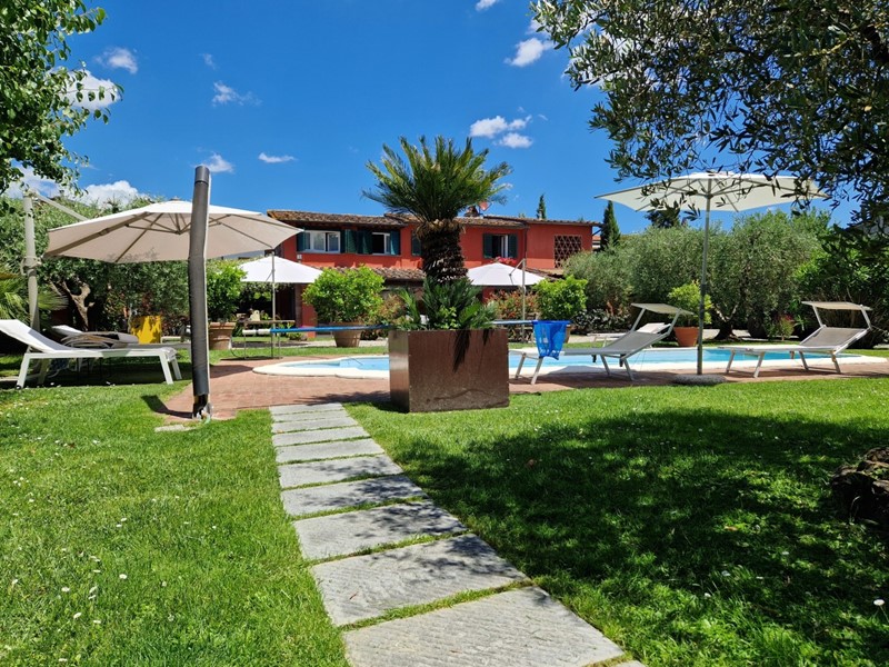 8 km da Lucca zona Marlia rustico ristrutturato di mq 180 elevato a due piani ubicato in zona tranquilla e soleggiata. Si compone di ampio portico d'ingresso, salone, cucina abitabile, sala da pranzo, e bagno al piano terreno, 3 camere con bagno ampio disimpegno al piano primo. Completano la proprietà mq. 1500 di giardino con piscina, pergola con forno, cucina estiva, zona relax esterna, sauna, vasca idromassaggio, ampio parcheggio. Eleganti finiture ottimo restauro.Subito disponibile. € 700.000. rif. 6161