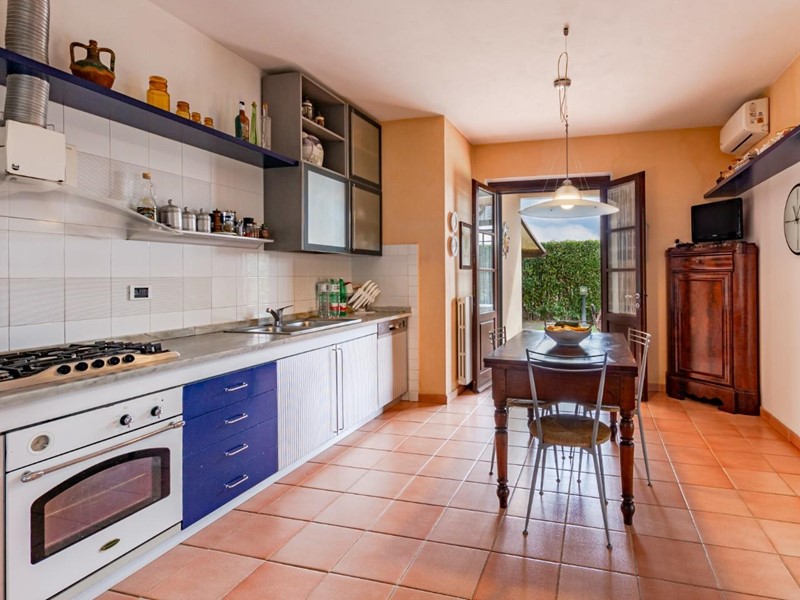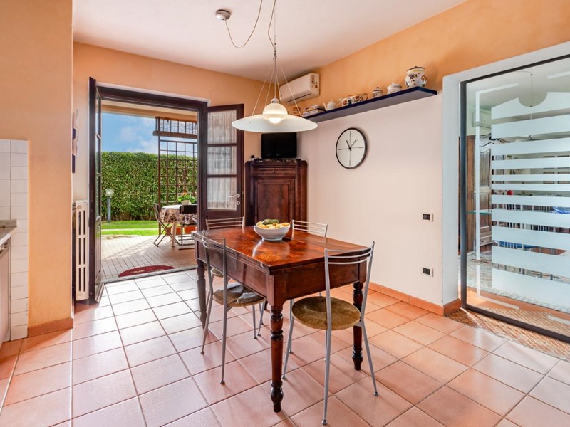 Dal giardino possiamo accedere ad un secondo appartamento (catastalmente già diviso) composto da ingresso, soggiorno con angolo cottura, due camere, e doppi servizi.