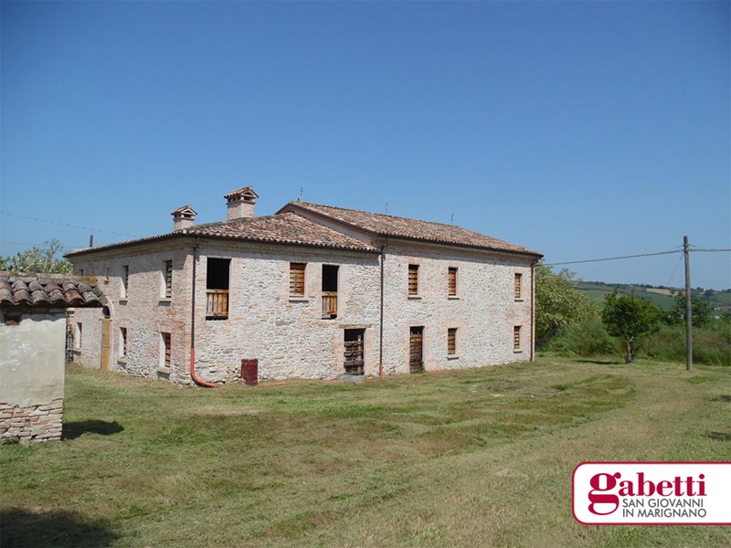 IN ESCLUSIVA! MORCIANO DI ROMAGNA Non lontano dal centro e comoda a tutti i servizi, proponiamo casa colonica completamente ristrutturata esternamente con materiali originali e caratteristici. Allo stato grezzo interno, tetto completamente nuovo con travi in stile.