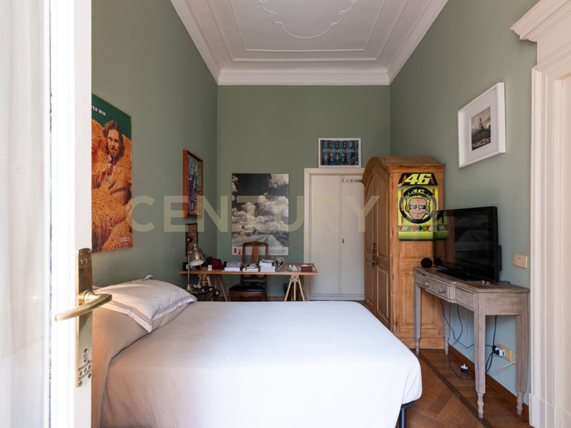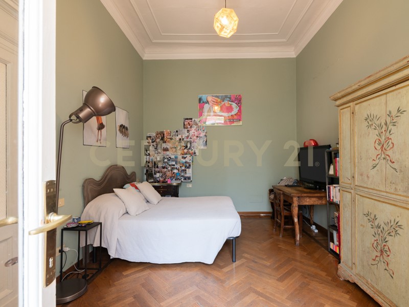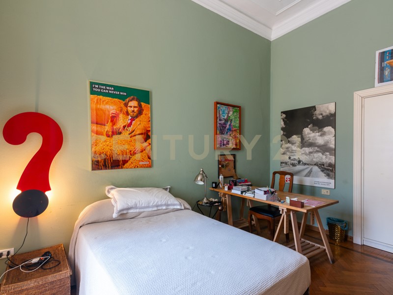 Presenta soffitti molto alti con decorazioni in gesso, alte finestre con infissi d’epoca e pavimenti in parquet a spina di pesce, un grande classico, sinonimo di stile e di raffinatezza.