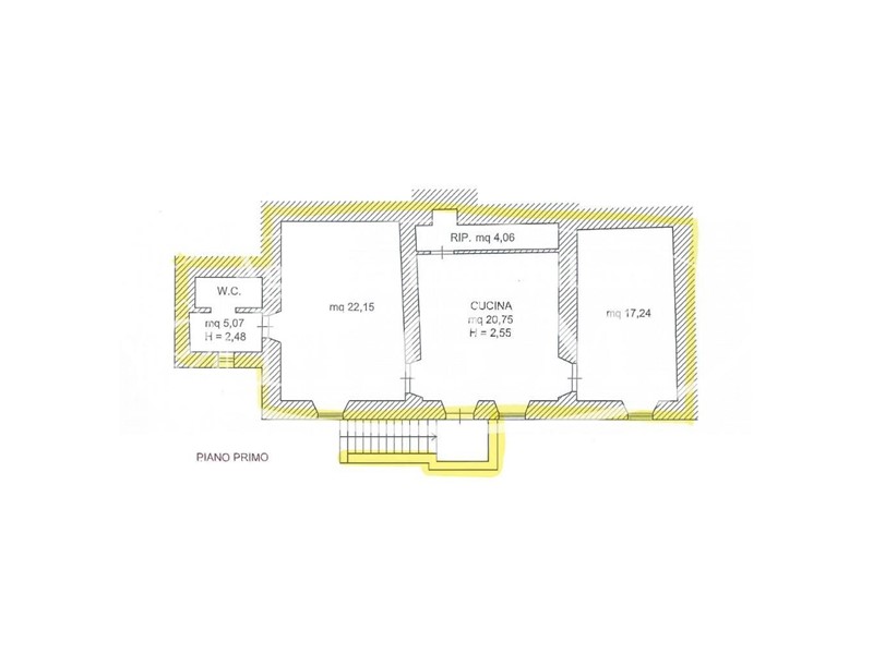 In piccolo fabbricato con caratteristiche di rustico, Appartamento da ristrutturare posto al piano primo, con ingresso indipendente, composto da ingresso-soggiorno-cucina con camino, ripostiglio, 2 camere e bagno, corredato al piano terra da ampio fondo, cantina, locale di sgombero, deposito/ripostiglio. La dimensione complessiva tra abitazione e fondi è di ca 170 Mq; completa la proprietà un area esclusiva di ca 100 Mq, adibita a resede/giardino, posta nelle immediate vicinanze, raggiungibile a mezzo di aia posta difronte alla proprietà. - L'immobile è da ristrutturare, privo di riscaldamento.
