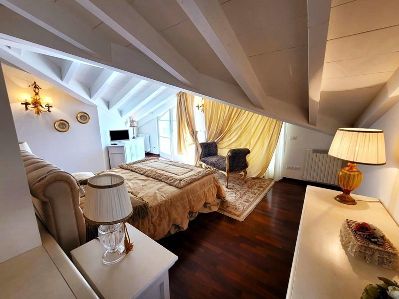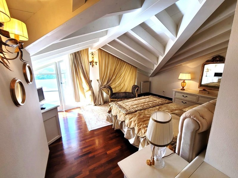Al piano superiore mansardato, ampia e luminosa matrimoniale con bagno privato e terrazza pranzabile.