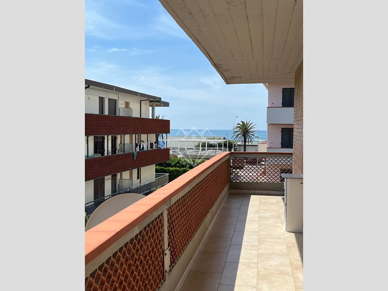 Da entrambe le camere e dalla sala si accede ad una terrazza pranzabile di circa 33 mq su 3 lati con una suggestiva vista mare e vista Alpi Apuane.