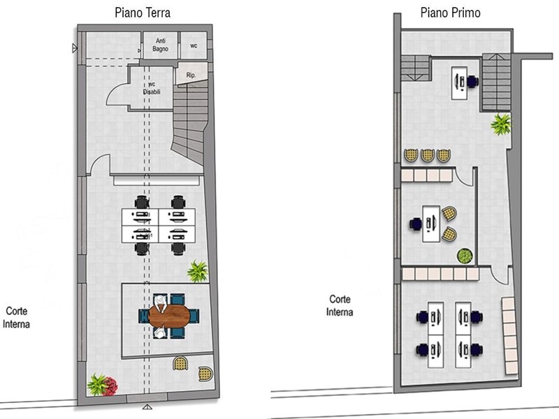 Disposizione: su due piani, garantendo una distribuzione funzionale degli spazi