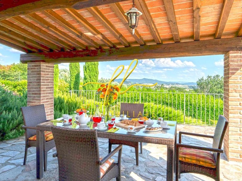 L’accogliente casale, il giardino, la piscina e il panorama circostante, fanno di questa proprietà un vero gioiellino immerso nella campagna toscana, da vivere e godere fin da subito.