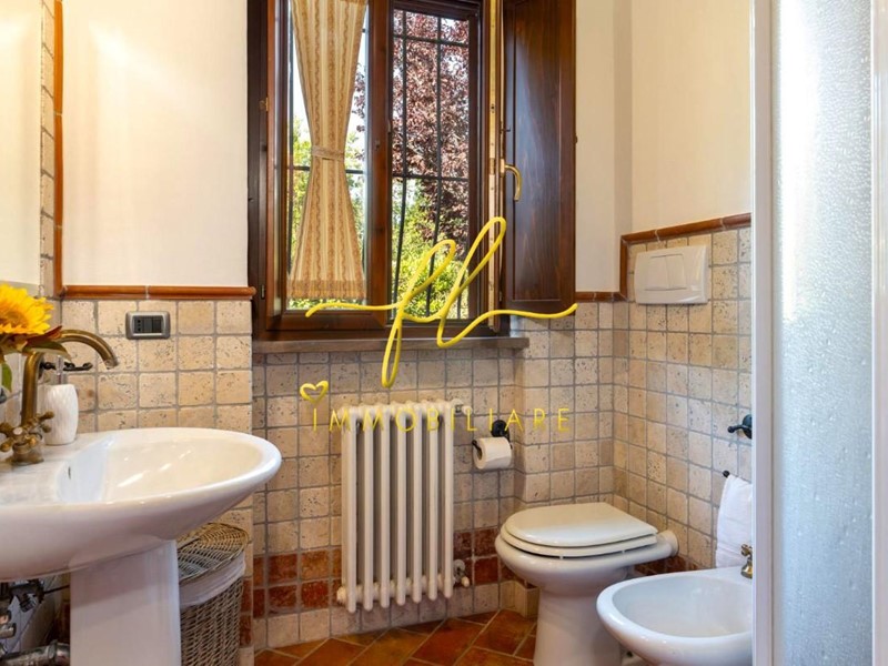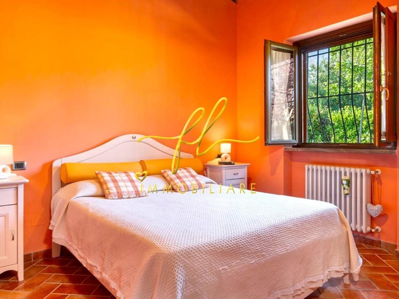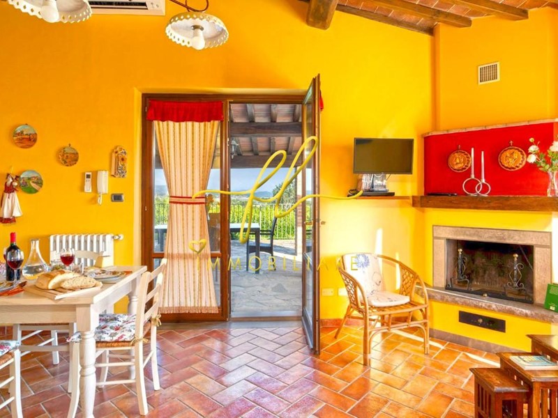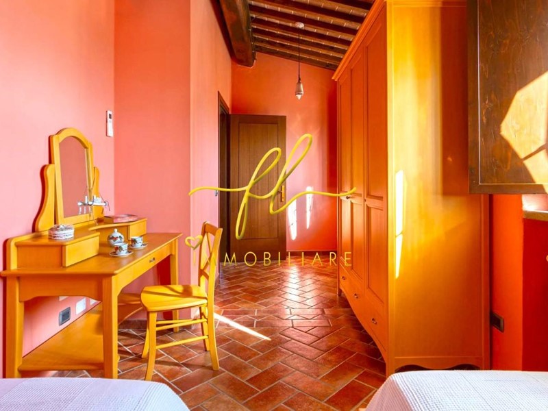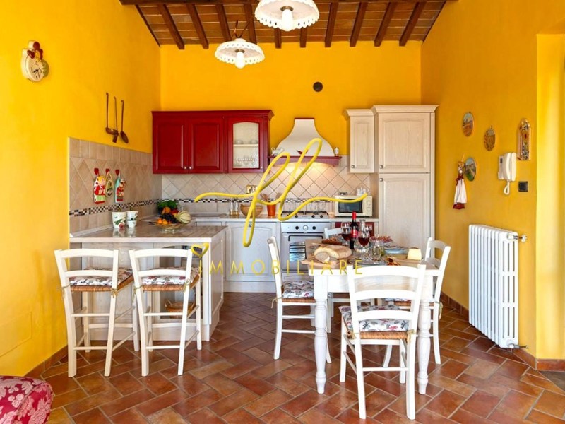 Lo stile è quello tipico toscano. La proprietà infatti è stata interamente ristrutturata nel 2014, valorizzando i soffitti con travi, travicelli e mezzane in cotto e pietra faccia a vista.