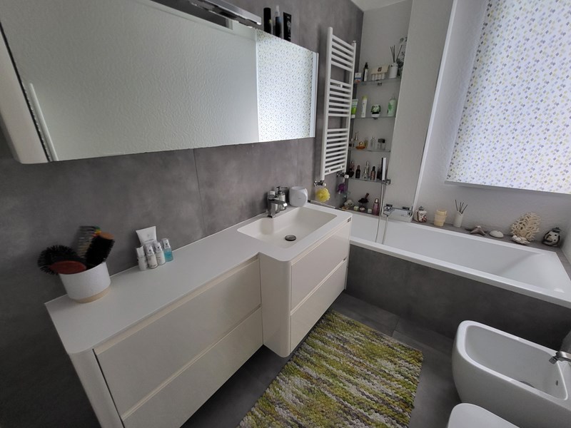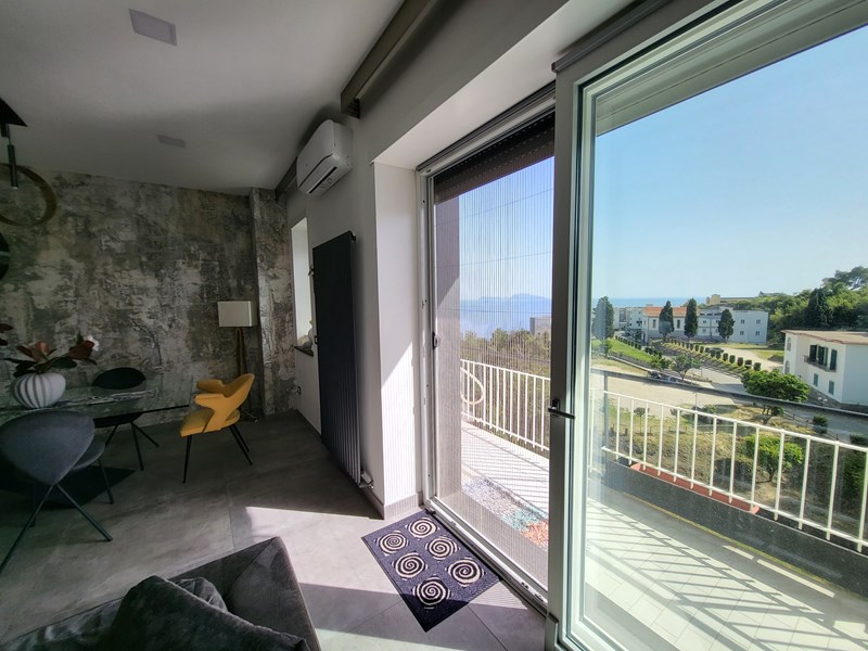 Pozzuoli - Via San Gennaro ad Agnano, zona ben collegata, in stabile signorile di cemento armato, con ascensore, stupendo appartamento di 4 vani e mezzo + doppi servizi, panoramico, il tutto cosi composto: ingresso in salone doppio, ampia cucina con zona lavanderia a scomparsa, disimpegno, cameretta, bagno padronale con vasca, camera da letto con altro bagno e box doccia, cameretta/studio, due ripostigli a soppalco, altro ripostiglio sul balcone della cucina. L'immobile si presenta finemente ristrutturato in stile moderno, con ambienti ben divisi, ben areati e soprattutto molto luminosi grazie anche alla sua splendida esposizione di quasi 360º con due ampie balconate, panoramica con affacci su ampi spazi verdi, sul mare e verso il Vesuvio. Inoltre l'immobile è dotato di: porta blindata, infissi alluminio/doppio vetro in Pvc con apertura a ribalta, tapparelle elettriche in alluminio, riscaldamento autonomo, 4 climatizzatori, porte a scrigno in vero legno, zanzariere, filodiffusione, impianti a norma, posto auto e posto moto.