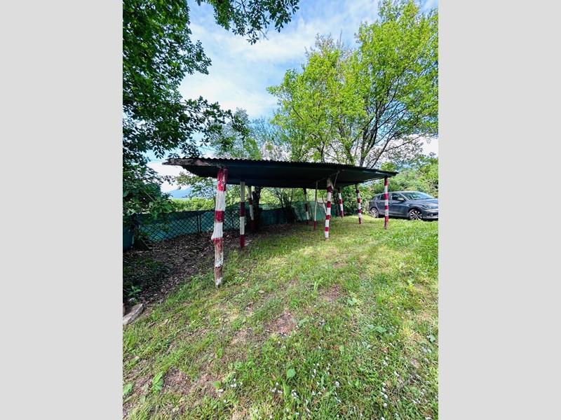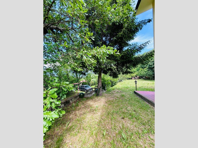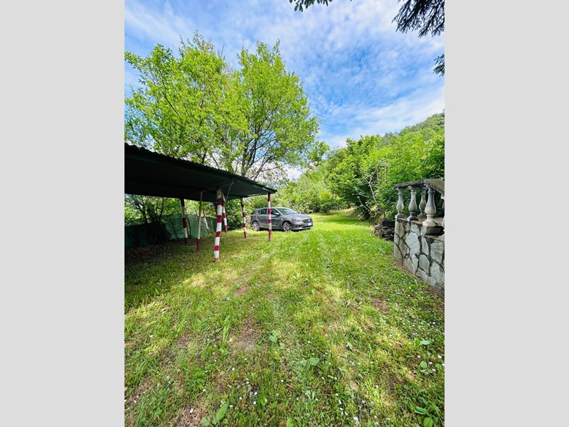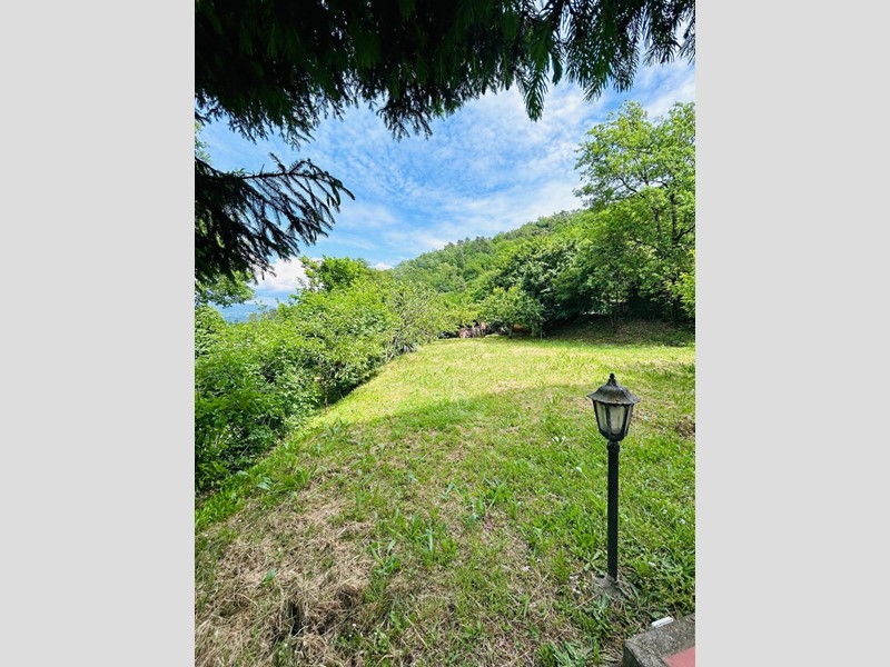 Attorno alla proprietà si sviluppa un giardino molto curato di circa 1000 mq, un ampio spazio privato per il parcheggio e circa 7000 mq di terreno boschivo.