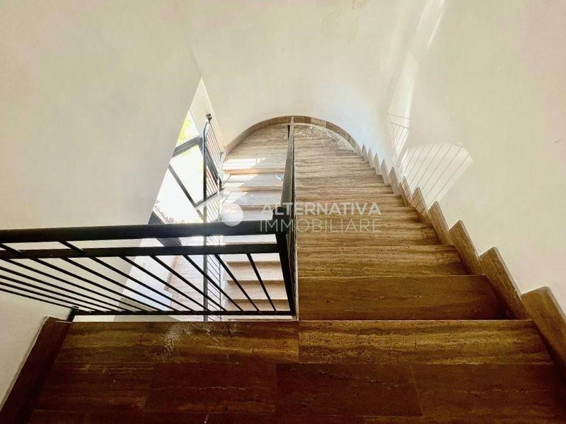 Il fondo è dotato di un ingresso condominiale che si affaccia su un ampio disimpegno. Sulla destra troviamo il bagno (con antibagno) e l’ampio ripostiglio. Proseguendo per il corridoio invece, si arriva ai tre uffici, spaziosi e illuminati da ampie finestre.