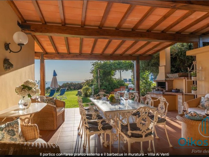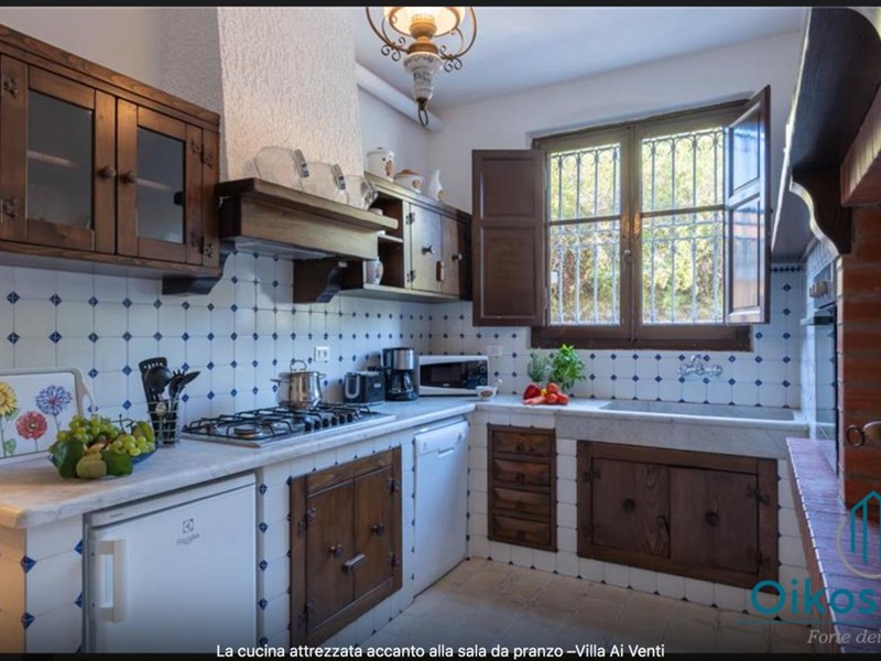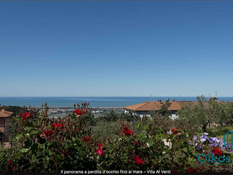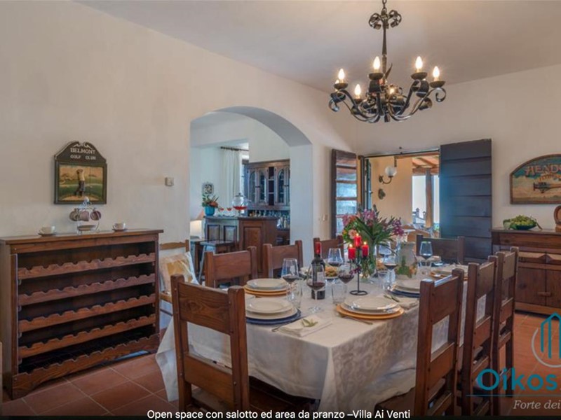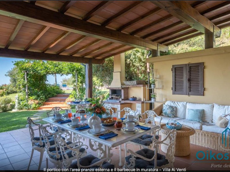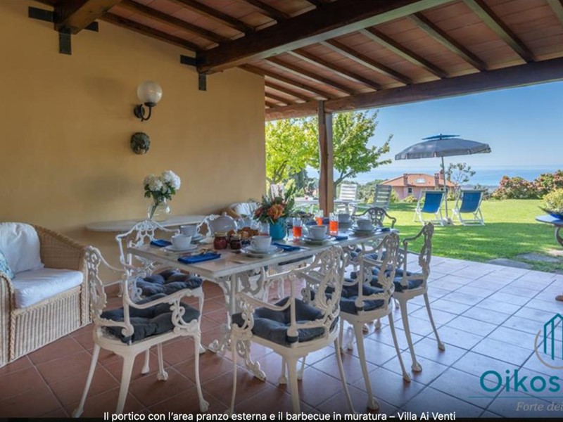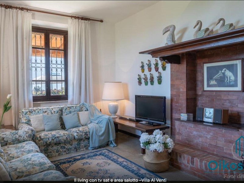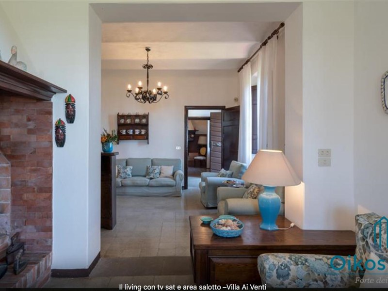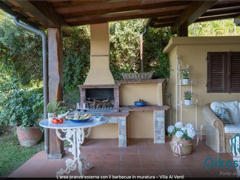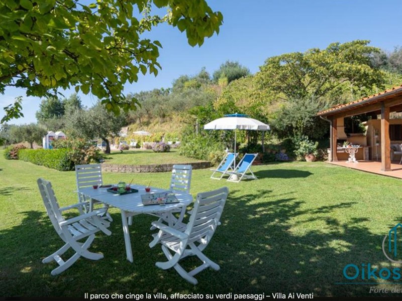 "Interni: Villa ai Venti è composta dal pianterreno ed un primo piano. Si accede alla casa attraverso il porticato che si apre su un open space con sala pranzo e soggiorno con il camino (solo ornamentale) con accesso diretto al giardino attrezzato. A lato del soggiorno, si accede alla cucina attrezzata e ad uno studio con camino, un bagno con doccia e ripostiglio con lavanderia con porta finestra che da sul retro del giardino. Tramite una rampa di scale in pietra serena, si accede al piano superiore, composto da tre camere matrimoniali, una camera a due letti e due bagni, uno con doccia ed uno con vasca. Parco: La villa è circondata da 2 ettari di terreno distribuiti tra l’oliveto e vigneti la cui raccolta dell’uva avviene intorno ai primi di settembre. Alle zone a prato si alternano aree di verde tipico della zona, perfette per godere della massima tranquillità che il contesto assicura. Adiacente alla casa, vicino alla zona dedicata al parcheggio, si trova un’area per volley ed il tavolo da ping-pong. Sotto il porticato attrezzato con barbecue, tavolo da pranzo e salottino in vimini si gode della vista della piscina e della bellissima vista sul mare e sul Lago di Massaciuccoli o Torre del Lago Puccini dove d' estate nel Teatro all' aperto dedicato al Maestro, si rappresentano le sue Opere, Tosca, Madame Butterfly, Turandot, Cavalleria Rusticana ed altre ancora. Piscina: La piscina a sfioro su tutti i lati domina lo strepitoso panorama che generosamente si offre da questa suggestiva posizione; è collocata su un terrazzamento di fronte alla villa e dista circa 30 m. Di forma rettangolare, con zona solarium in cotto e vasca rivestita in ceramica, misura 12x6 m con profondità variabile da 0,80m a 2m. L’impianto di depurazione è a cloro ed è impreziosita dalla illuminazione sia interna che esterna. La zona intorno alla piscina è dotata di spogliatoio, lettini, sdraio ed ombrelloni. Per ulteriori informazioni, potete contattarci o venirci a trovare presso la nostra sede OIKOS REALE STATE in Forte dei Marmi (LU) alla via Trento n. 45/A."