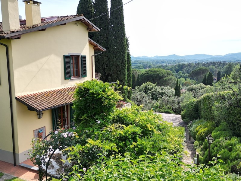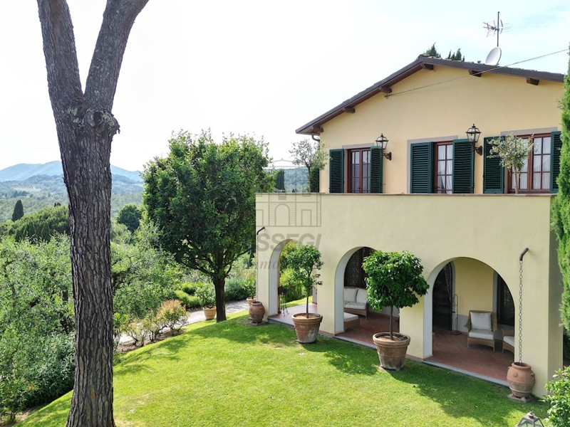 IA03692 IMPORTANTE ED ELEGANTE VILLA PADRONALE collocata sulle prima collina a circa 2,5 Km dalle mura storiche di Lucca. Questa bella villa realizzata negli anni 80 del secolo scorso con un disegno classico caratterizzato dagli ampi porticati ben si inserisce nel paesaggio di una bella collina contornata di esclusive ville padronali. La zona è molto silenziosa, panoramica con vista sulla Città e sulle colline circostanti e l'esposizione è eccellente . Incastonata in un lotto di mq.5000 interamente recintato e dedicato a giardino sul quale è inserita una piscina di recente costruzione di 6x12. La villa che sviluppa circa mq.450 è stata costruita adesa alla collina alla quale si raccorda con una zona dedicata a servizi per poi sviluppare al piano terreno e primo la residenza padronale. Al piano terra ci accoglie un grande salone di ingresso che apre sulla biblioteca e su una sala da pranzo servita da una grande e bella cucina con ripostiglio, una bella scala a vista ci porta nella zona notte dove da ampi disimpegni si accede a 4 camere da letto (una delle quali en suite) e a 2 bagni. Al piano notte dalla camera padronale si trova una grande e ben esposta terrazza dalla quale si gode una bella vista della Città murata. Completa il tutto il piano seminterrato che si raggiunge sia dall'esterno che internamente nel quale oltre alle zone di servizio ( lavanderia, locale termico wc etc) è stato realizzato funzionalmente un grande ambiente idoneo a vari utilizzi sia di ricevimento, sia per alloggiare ospiti o altro.Tutta la villa è estremamente curata e luminosa ed è stata oggetto di una completa ristrutturazione e adeguamento recente e quindi Il grado di finitura e la perfetta conservazione ne permettono un uso immediato. Classe energetica E Richiesti €.1.950.000,00
