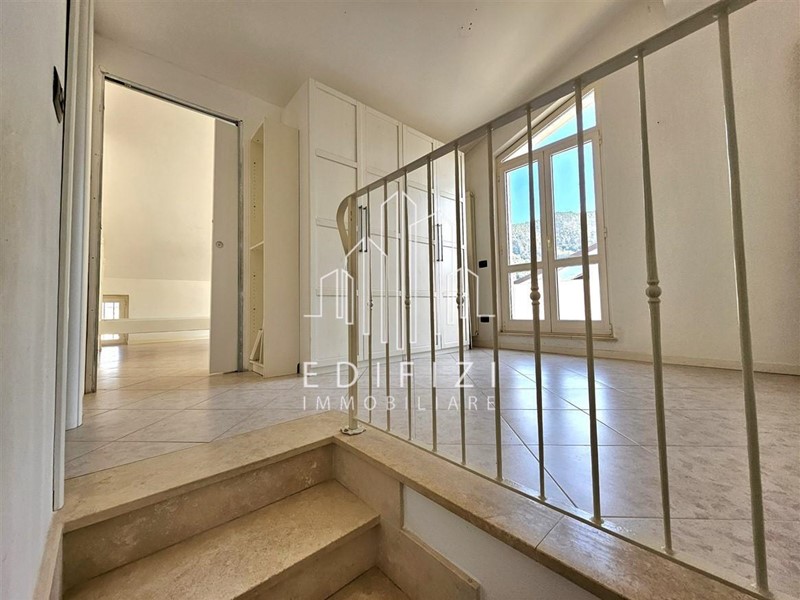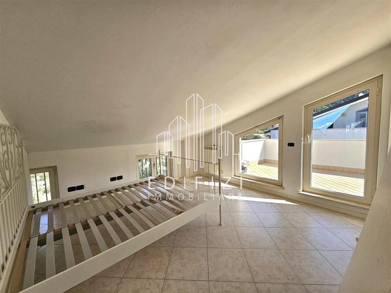 su due piani di fabbricato recentemente edificato e provvisto di ascensore, risulta composto di: ingresso su salone-soggiorno con uscita su terrazza pranzabile dalla quale si gode una stupenda vista panoramica, cucina, disimpegno, bagno e camera da letto matrimoniale oltre ad altro balcone in piano secondo – due camere da letto, vano armadi, bagno e grande terrazza panoramica in piano terzo mansardato oltre a comodo posto auto coperto al piano interrato.