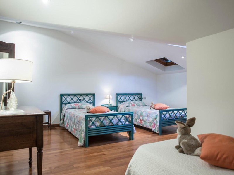 Al piano superiore si trova la zona notte con quattro camere, di cui due matrimoniali con bagno in suite (uno dotato di vasca idromassaggio Jacuzzi, l'altro con doccia), le altre due camere sono una doppia e una tripla servite da un ulteriore bagno con doccia.