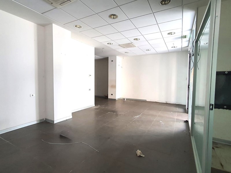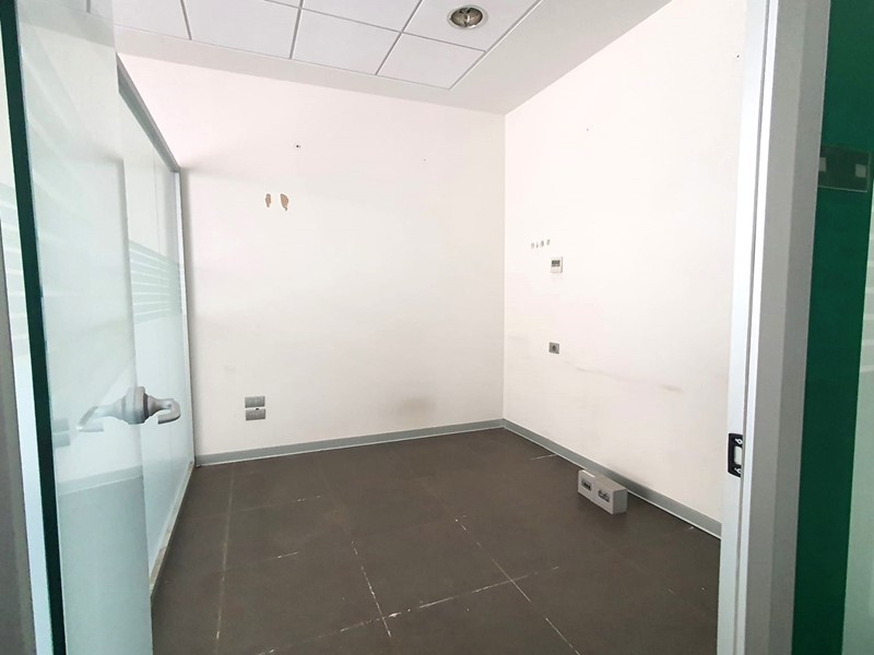 La porzione immobiliare presenta una conformazione planimetrica regolare, è contraddistinta da un ampio salone dove sono ricavati, mediante l'utilizzo di pareti mobili, 3 uffici singoli, una zona di back-office con locale ad uso archivio e un vano tecnico, con corpi illuminati interclusi e pavimentazione in gres o ceramica.