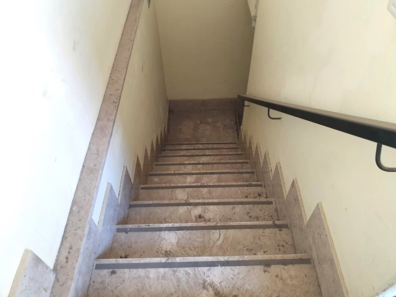 L'immobile risulta così composto: all'ingresso una sala pubblico con retrostante sala operativa, due uffici che delimitano la sala pubblico, sul retro, serviti da un disimpegno, uffici e servizi igienici; attraverso una scala interna si accede al piano cantinato, un unico vano pilastrato destinato ad archivio. I serramenti sono in alluminio e vetro camera mentre la pavimentazione è in marmo.