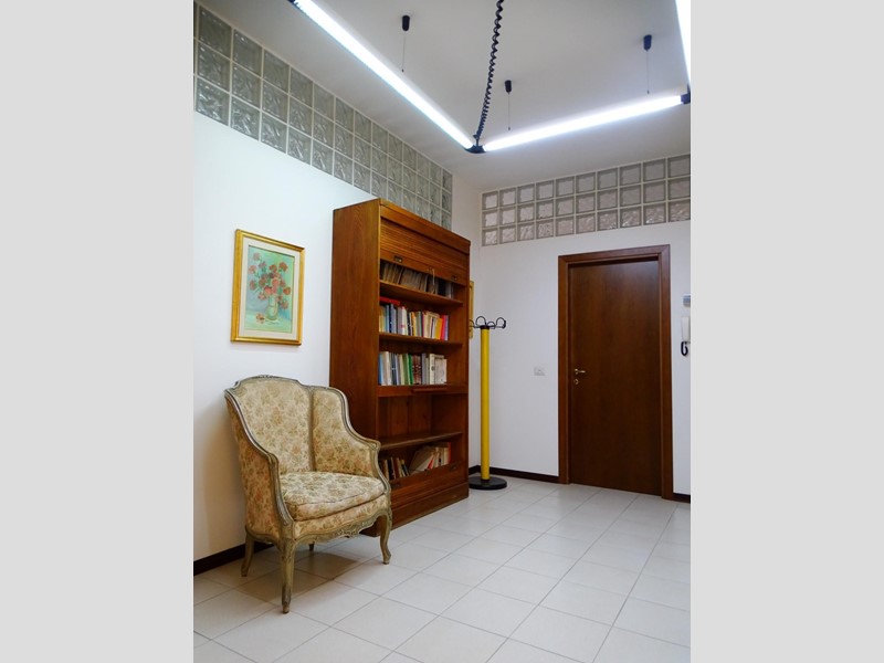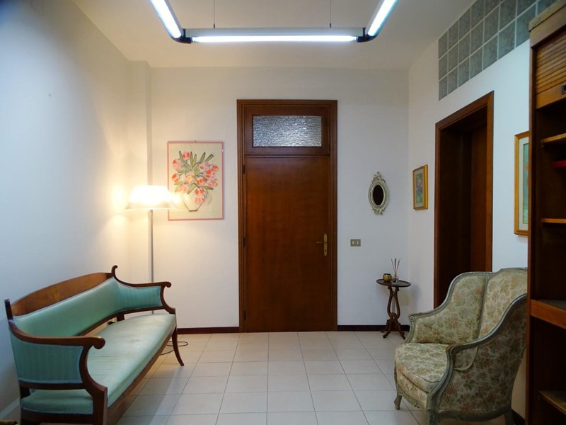 Centralissimo appartamento ad uso ufficio, della superficie di 110 mq. circa, situato al primo piano di un più ampio edificio, con accesso da ingresso, vano scala e corridoio condominiali. Si compone di ingresso/sala d’aspetto, tre vani principali, disimpegno, saletta con secondo ingresso, due bagni con antibagno e due terrazze. Può anche essere funzionalmente suddiviso in due unità indipendenti, grazie all’esistenza di due ingressi separati.