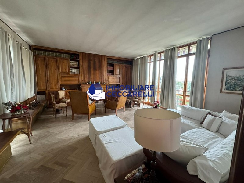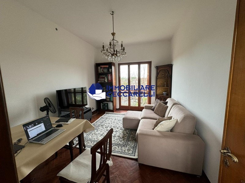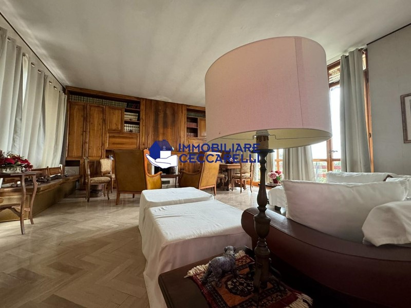 Al piano primo troviamo un comodo ingresso, grande e luminosissimo soggiorno con pareti a vetro in cui è incastonato camino con bella biblioteca in noce massello su misura, cucina abitabile, tre camere da letto, un bagno ed una spaziosa terrazza .