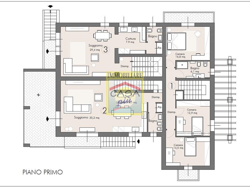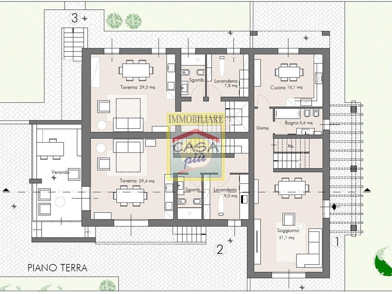 CASCINA - VILLETTA N. 2 - In posizione centralissima vicina a tutti i servizi, villetta angolare in fase di esecuzione corredata da giardino privato di circa 700 mq., disposta ai piani terra, primo e secondo, così composta: al piano terreno ampia taverna finestrata con loggiato di circa 20 mq in collegamento diretto con il grande giardino, locale lavanderia, ripostiglio predisposto per bagnetto di servizio e scala interna per accedere ai piani superiori; al piano primo al quale si accede sia da scala interna che da scala esterna con terrazzo, ingresso nel salone con terrazza abitabile, cucina, bagnetto di servizio e ripostiglio; al piano secondo ed ultimo disimpegno reparto notte, una camera matrimoniale con cabina armadi, due camere singole, bagno con finestra e doccia. L'ampio giardino privato al suo interno ospita due comodi posti auto. Rifiniture di pregio, impianti tecnologici ed infissi di ultima generazione garantiscono elevate prestazioni termiche ed acustiche, solare termico, prevista a fine lavori classe energetica A. Euro 485.000 - Rif.1603 ---------------- A tutela della privacy l'indirizzo indicato potrebbe non corrispondere alla reale ubicazione dell'immobile in oggetto, ma trovarsi nelle vicinanze e godere sostanzialmente degli stessi servizi.