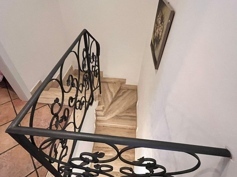 L'appartamento si sviluppa su tre piani; entrando troviamo la zona giorno con tavolo da pranzo, divano e accogliente camino in muratura, ideale per scaldare le serate invernali, e adiacente vi è in luminoso cucinotto con accesso su terrazza. Dalla zona giorno si accede verso il giardino esterno lastricato.