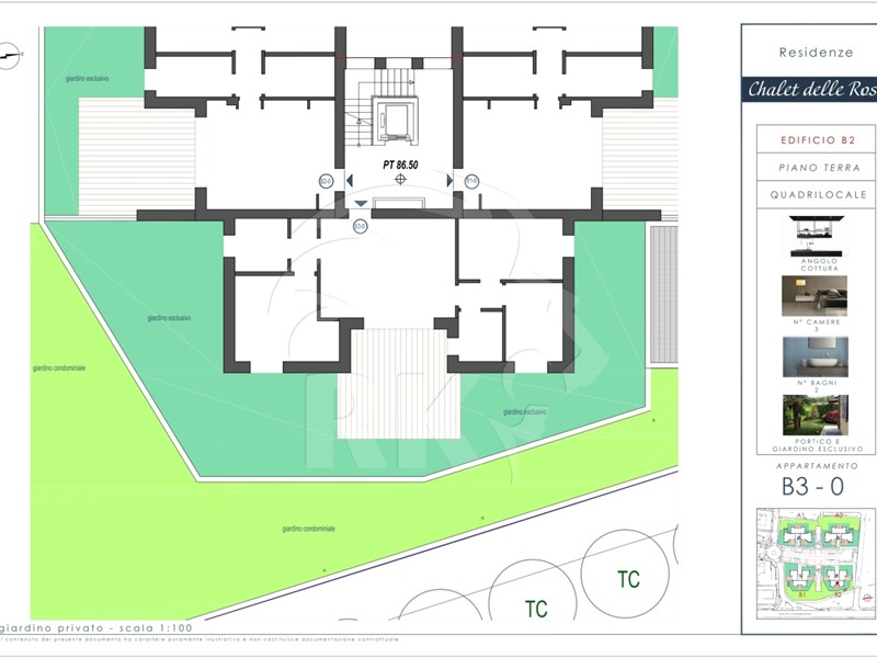 UNITA' B3-0: Ingresso su ampia zona giorno con angolo cottura e patio esterno abitabile con fioriera, 3 camere da letto e due bagni più cantina. E’ possibile acquistare un box auto nel piano seminterrato servito da ascensore.