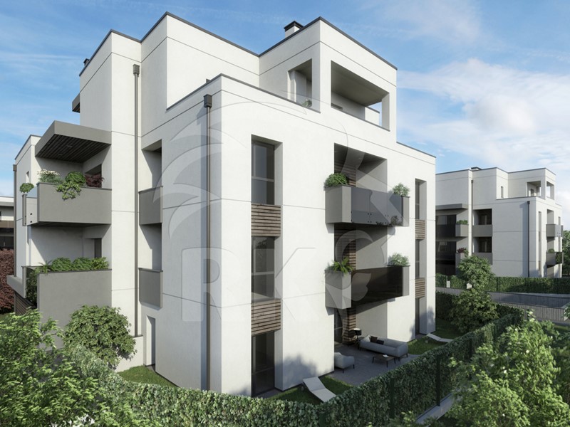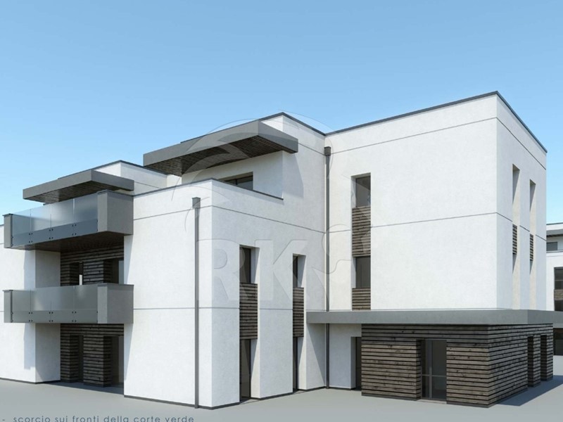 PARTE ESTERNA : Palazzina di nuova costruzione in stile moderno,. No barriere architettoniche all'ingresso del fabbricato. Cantina al piano seminterrato servita da ascensore, ampie zone verdi condominiali e private.