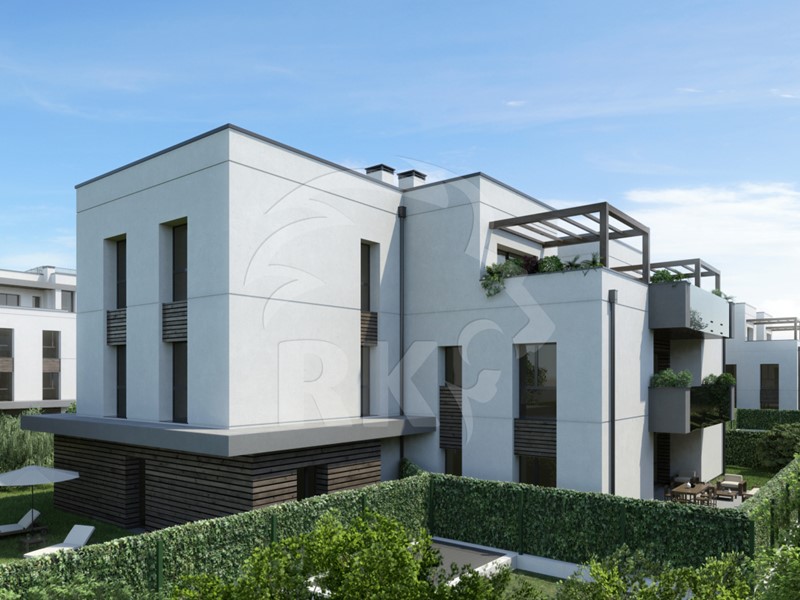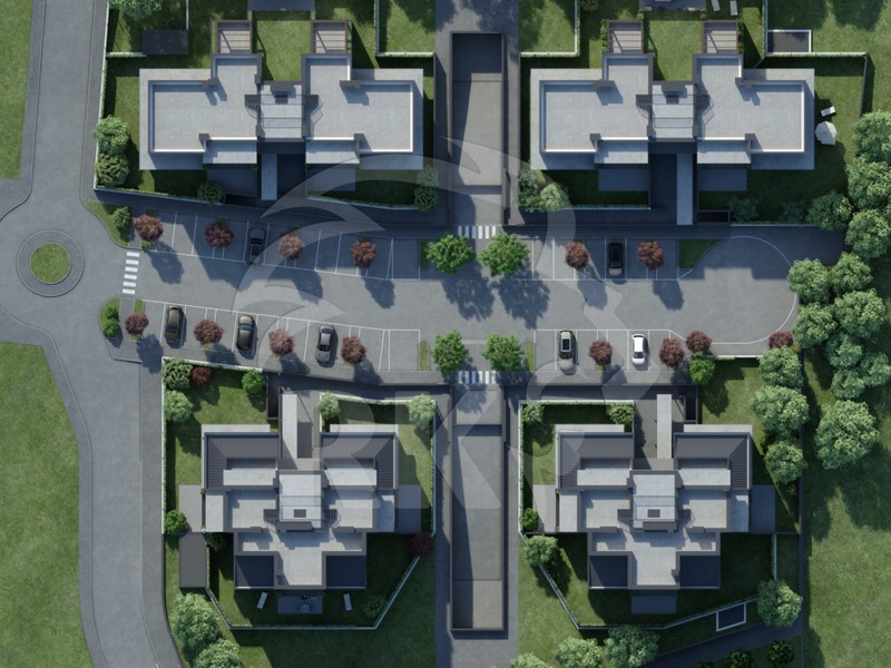 PARTE ESTERNA : Palazzina di nuova costruzione in stile moderno,. No barriere architettoniche all'ingresso del fabbricato. Cantina al piano seminterrato servita da ascensore, ampie zone verdi condominiali e private.