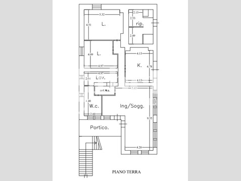 La proprietà è circondata da un terreno di circa 400mq , un lotto di 1000mq e da un terrazzo con portico di 425mq circa.