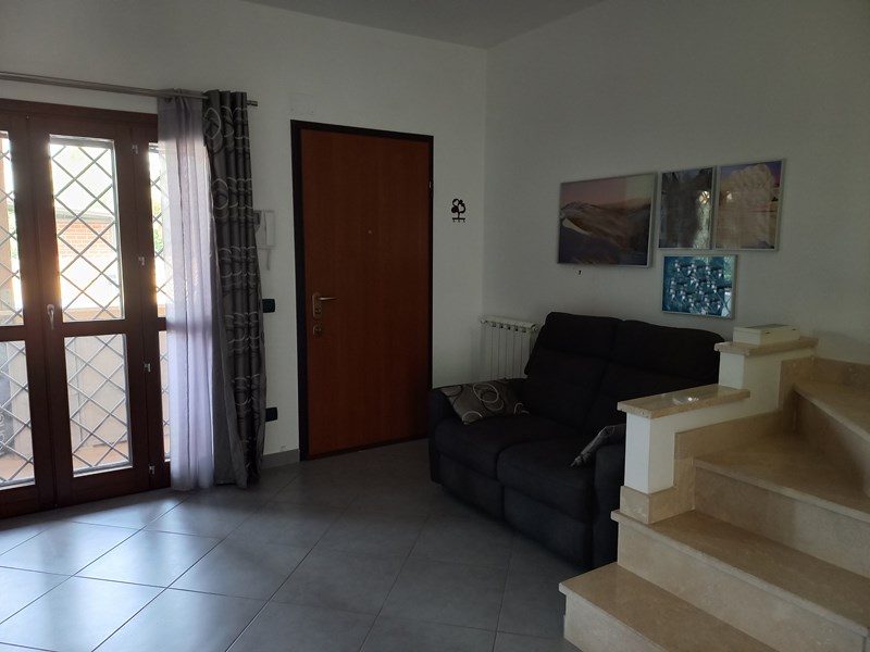 Si propone la vendita di un villino a schiera rialzato, con 2 balconi e su 2 livelli di 45 mq calpestabili con posto auto scoperto di 48 mq e un portico di 27 mq ideale per lo svago e il relax. Il primo piano è composto da un open space con salone, angolo cottura e bagno al secondo livello una camera da letto mansardata. Il villino è di recente costruzione (2011) è comprensivo di 2 climatizzatori Mitsubishi classe A++ di recente acquisto, riscaldamento autonomo, boiler con pannello solare per l’acqua calda ed è situato in un quartiere tranquillo vicino la fermata Fiera di Roma del trenino regionale Orte Fiumicino comodo per raggiungere tutte le stazioni della città e si trova all’uscita Piana del Sole e a pochi km dal centro commerciale Da Vinci e Parco Leonardo.