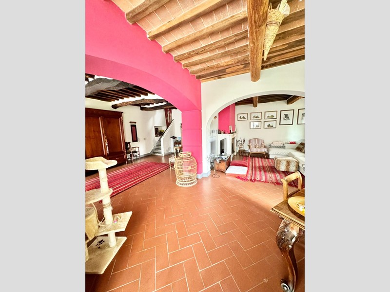 L'immobile al suo interno è così composto : al piano terra veniamo accolti da un ampio disimpegno con accesso alla sala pranzo e salotto con camino il tutto comunicante tramite archi, bagno di servizio, ripostiglio, grande cucina abitabile dalla quale si accede al gradevole resede con vista sul giardino; al 1° piano si accede tramite scala in pietra dove troviamo 2 camere matrimoniali una delle quali con cabina armadio, bagno padronale con ampia doccia e 2 finestre e altro bagno con doccia; tramite scala in ferro si accede al 2° piano dove troviamo camera doppia-pluriuso, 2 camerette e bagno con doccia.