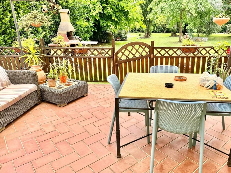 Nel cuore del paese di Vecchiano in strada poco trafficata proponiamo in vendita terratetto angolare disposto su tre livelli in stile Rustico. L'immobile è stato ristrutturato all'incirca 20 anni fa ed è ben tenuto, esternamente la proprietà è composta da garage con zona lavanderia di 25 mq, forno e ripostiglio, resede per posti auto, giardino attaccato su tre lati del fabbricato di circa 600 mq.