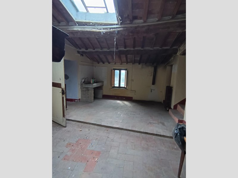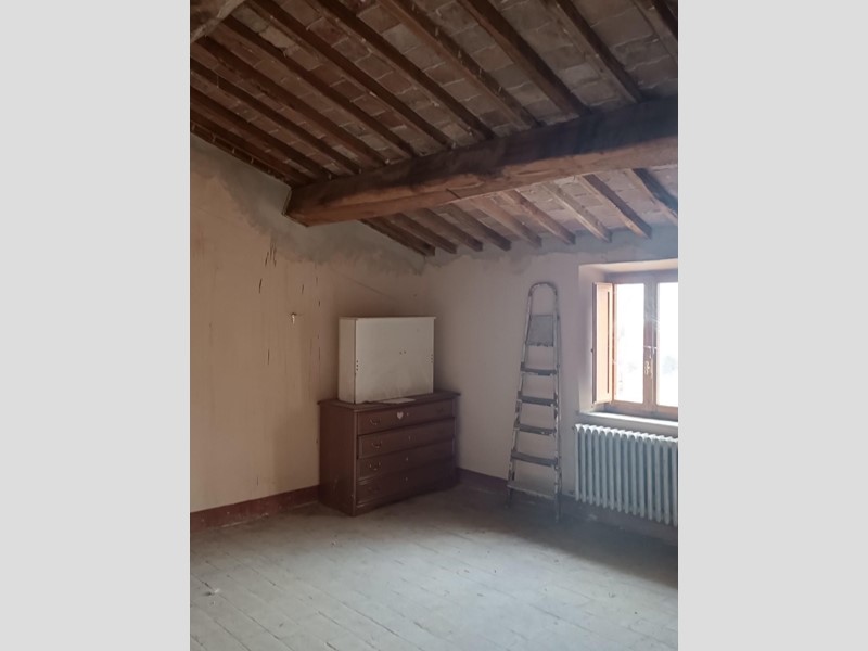 Casciano di Murlo - All’interno di un borgo vicino al paese di Casciano di Murlo appartamento al primo ed ultimo piano con ingresso a due, così composto, accesso nel disimpegno, studio, cucina, soggiorno con lucernario e caminetto, tre ampie camere da letto ed un bagno, l’immobile ha il tetto rifatto,internamente necessita di essere ristrutturato. Di pertinenza una cantina al piano terreno e un appezzamento di terreno con olivi vicino all'abitazione.