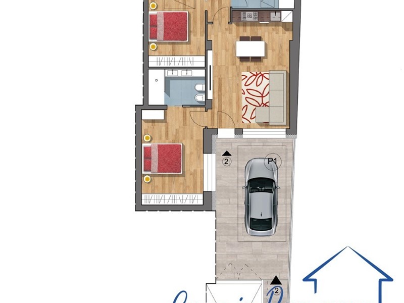 L’abitazione è completata da un giardino di proprietà e un posto auto privato. È possibile personalizzare gli interni scegliendo finiture e materiali.