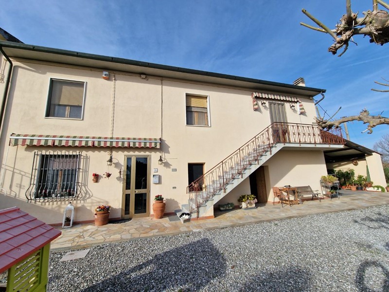 La prima abitazione è completamente ristrutturata e ottimamente mantenuta dagli attuali proprietari. E' un terratetto (di circa 120 mq) su due livelli e si compone di: ingresso, soggiorno con camino, cucina abitabile con ripostiglio-dispensa, bagno (ristrutturato recentemente) con doccia e finestra oltre a locale pluriuso attualmente adibito a camera, ripostiglio sottoscala e scala di accesso al piano primo dove troviamo: due camere, una matrimoniale ed una singola ampia oltre a bagno. La seconda abitazione è completamente sviluppata al piano primo, di circa mq 87, libera su tre lati e con fondi sottostanti uso locale sgombero/cantina trasformabili in taverna, lavanderia o in ambienti personalizzabili in base alle esigenze, oltre a loggia per posto auto coperto. L'appartamento è raggiungibile tramite scala esterna e balcone e consiste in: ingresso-tinello, cucinotto, soggiorno, disimpegno, camera matrimoniale, camera singola e bagno. Questo appartamento è abitabile, ben diviso ma necessita di alcuni lavori di rimodernamento. la proprietà è arricchita dalla presenza di un resede esclusivo perimetrale con terreno attaccato per complessivi mq 1000 di spazi esterni su cui insistono: un locale ex pollaio, una tettoia, un ripostiglio, un locale sgombero ed il volume condonato di un magazzino attualmente demolito. Naturalmente grandi spazi dove parcheggiare i propri veicoli.