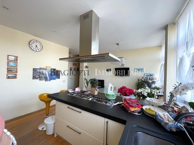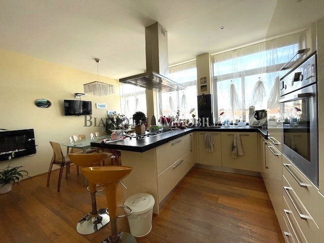 MANZONI ATTICO: BIFAMILIARE attico con bellissima terrazza di 130mq VISTA MARE, attualmente diviso in due appartamenti indipendenti. Un bilocale composto da ingresso, cucina abitabile con veranda, piccola sala, 1 matrimoniale e bagno con fin. L'altro grande appartamento è composto da ingresso grande cucina-pranzo con bellissima vista fossi, 3 camere matrimoniali, bagno con fin. e ripostiglio; tramite comoda scala si accede ad una ampia sala con caminetto, altro bagno e veranda attrezzata di cucina per usufruire comodamente della grande terrazza circostante di 130 mq con meravigliosa vista. Poss. garage in affitto. Cl.F(5160)