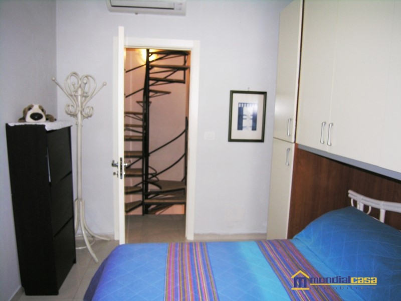Casa di nuova costruzione (struttura in C.A. antisismica) la casa è disposta su tre piani, dove al piano terra troviamo la zona living, con cucina e bagno completo di doccia; al primo piano camera da letto con bagno sempre completo di doccia ed in fine al secondo piano un vano utilizzabile anche come seconda camera, con servizio/lavanderia e piccola verandina chiusa a vetri scorrevoli che esce sul balcone. La casa non necessita di nessun intervento è pronta all'uso immediato, provvista di ben tre climatizzatori (uno per piano) ottima soluzione per chi cerca una casa vacanze o per uso residenziale non molto grande.