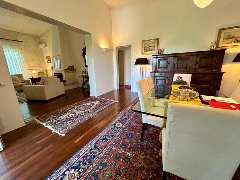 La proprietà si articola su unico livello al piano terreno dove tutti gli ambienti si affacciano ed hanno accesso al giardino. Gli ambienti interni si articolano in modo funzionale e ben studiato. si accede all'immobile direttamente nella zona giorno, composto da ampia zona soggiorno con camino, sala pranzo e cucina abitabile, dalla cucina uscita diretta nell'ampio porticato attrezzato con cucina, camino e locale tecnico. Il disimpegno della zona notte garantisce un'ottima privacy alla seconda ala dell'immobile. Zona notte composta da tre ampie camere matrimoniali, di cui due con bagno direttamente en-suite, ulteriore bagno, lavanderia e ripostiglio.