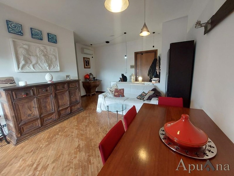 Massa - Appartamento di taglio tradizionale al piano quinto servito da ascensore. Composto da soggiorno, cucinotto, balcone, disimpegno, due bagni, ripostiglio/lavanderia, due camere matrimoniali, cabina armadi. Si presenta in buono stato con pavimenti in parquet ed aria condizionata.