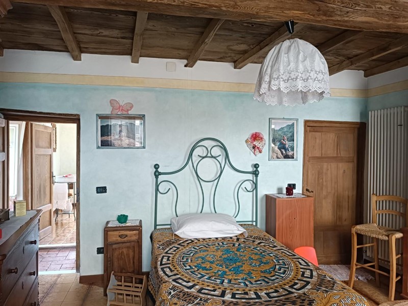 La casa dispone di un antibagno e un bagno, una cucina abitabile con terrazzo che offre una vista mozzafiato sulle montagne circostanti. Le due camere da letto matrimoniali sono spaziose e luminose, una delle quali con accesso alla soffitta, perfetta per essere utilizzata come spazio di stoccaggio o studio. La cantina è divisa in due vani, ideale per conservare vini o come area di lavoro.