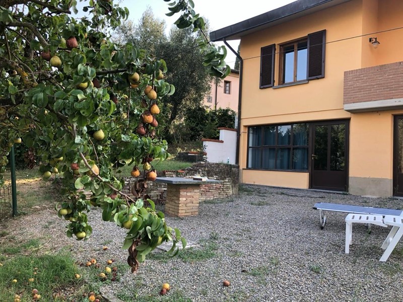 Nel caratteristico borgo di Ghizzano, immerso nel verde, con bellissima vista sulle colline toscane, tra vigneti ed oliveti, vendesi villetta unifamiliare libera su quattro lati con giardino circostante e terreno con piante di olivi e alcuni frutti. per una superficie complessiva di circa 900mq. L'abitazione si sviluppa su tre livelli, ed è composta, al piano rialzato da ingresso, ampia cucina con terrazzo, ampio soggiorno-pranzo, con camino e terrazzo coperto, disimpegno notte, due camere matrimoniali di cui una con terrazzo coperto e ampio bagno. Al piano sottotetto ampio locale abitabile, oltre a soffitte praticabili, al quale si accede da scala a chiocciola posta nell'ingresso e dalla quale si accede anche al piano seminterrato, dove troviamo un bagno, un locale taverna, un ampio garage di 40 mq., un locale cantina/ legnaia con accesso anche dall'esterno e un locale caldaia. L'immobile è in buono stato di manutenzione e da subito abitabile.