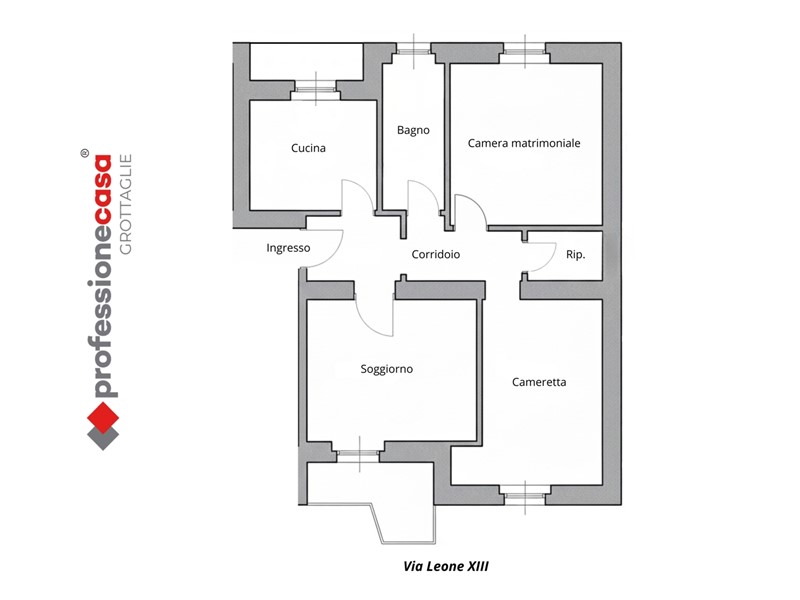 L'abitazione si apre su un comodo disimpegno che conduce alla cucina abitabile e a un ampio soggiorno doppio, impreziosito da un balconcino con affaccio diretto su Via Leone XIII, che garantisce una piacevole luminosità agli ambienti. Un corridoio disimpegna la zona notte, composta da una camera da letto matrimoniale, una camera doppia e un pratico ripostiglio.