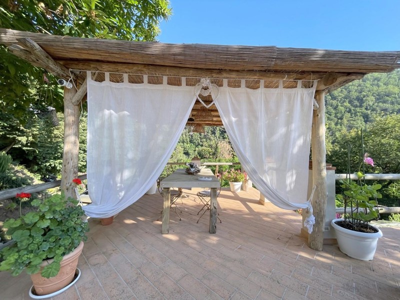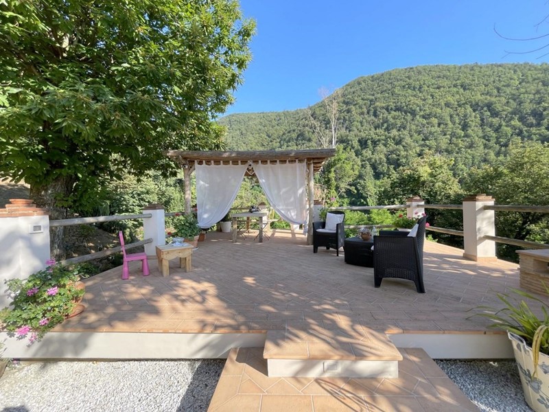 All'esterno, la casa dispone di una magnifica terrazza panoramica con vista su tutta la vallata, ideale per momenti di relax o cene all'aperto. Completa la proprietà una comoda dependance con cucina, perfetta per godere delle belle giornate all'aperto ed un generoso garage.