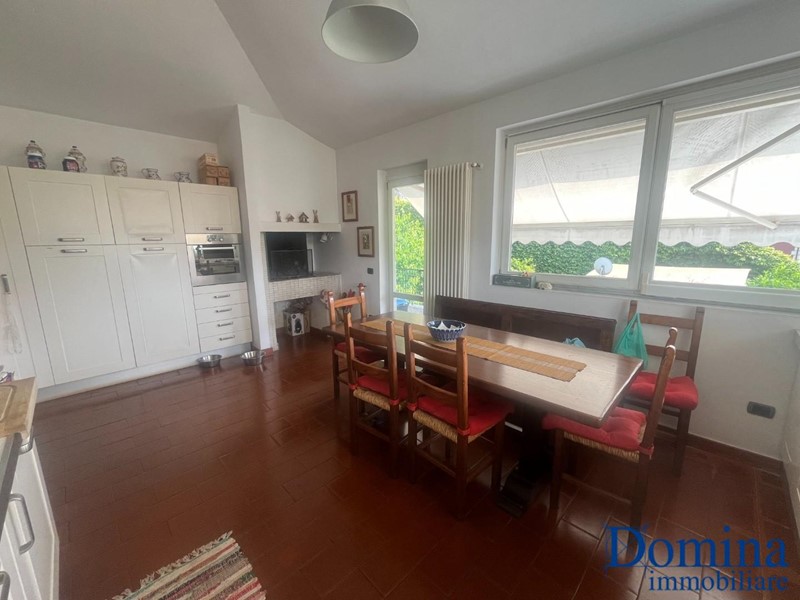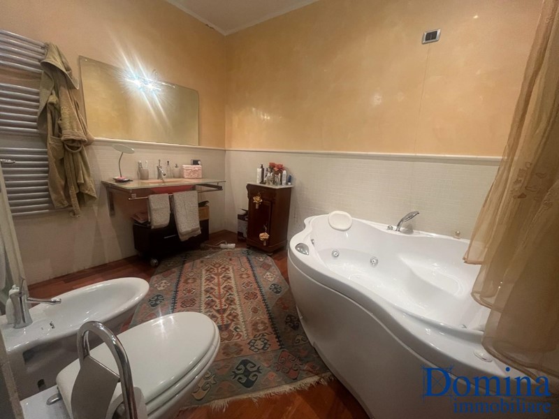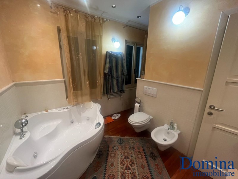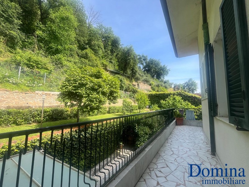 Massa Centro - Immersa nel verde e nella tranquillità, si propone in vendita prestigiosa porzione di villa bifamiliare sviluppata su due livelli oltre ad ampio giardino e posti auto. Con accesso dal giardino di proprietà si accede al piano primo tramite scale esterne che conducono al balcone perimetrale. Al suo interno: ingresso, ampio e luminoso soggiorno con camino, cucina abitabile, disimpegno zona pranzo, lavanderia, bagno di servizio, disimpegno zona notte con camera, ampia camera matrimoniale ed un bagno con doccia e vasca idromassaggio; al piano sottotetto tre vani pluriuso, terrazzino a tasca ed un bagno. A completamento cantina al piano terreno.
