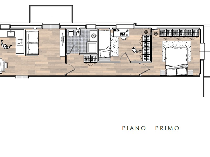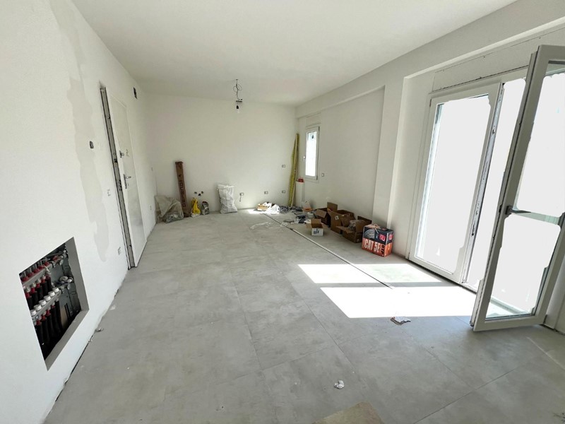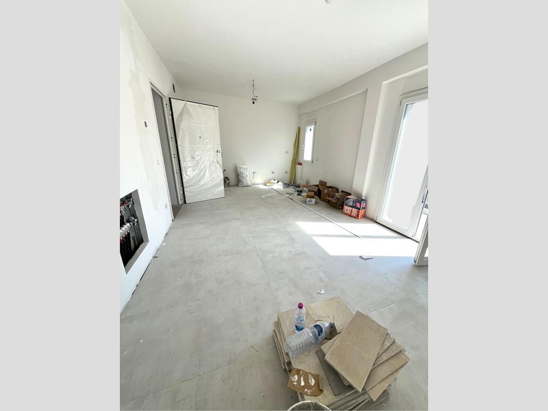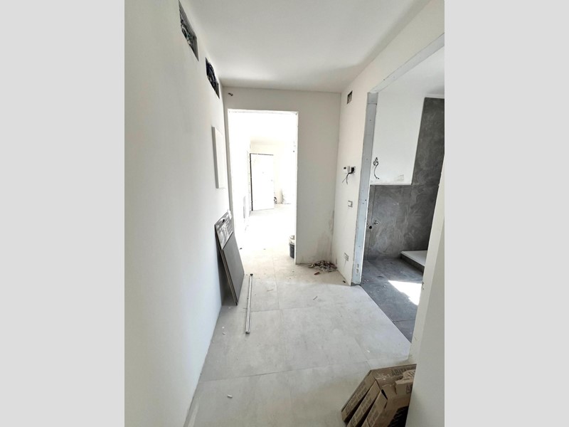 L’immobile è così composto: ingresso in soggiorno con angolo cottura e terrazza, disimpegno notte, camera matrimoniale con terrazza, cameretta e bagno.