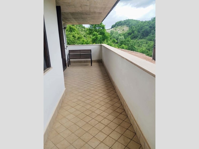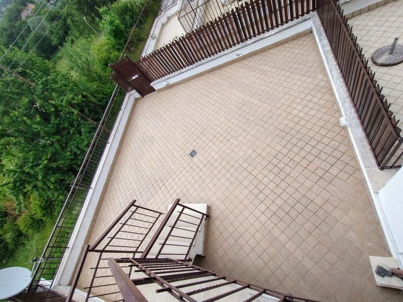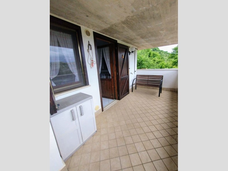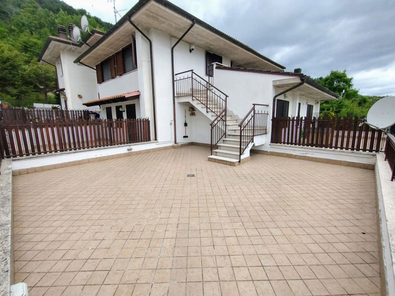 Verrecchie - Appartamento 1°p. con ingresso indipendente: soggiorno con angolo cottura e camino, camera, cameretta, bagno, balcone, ampio terrazzo al p.t. e box auto. Cl.en. G. I.p.e.>175 kwh/mq/anno.