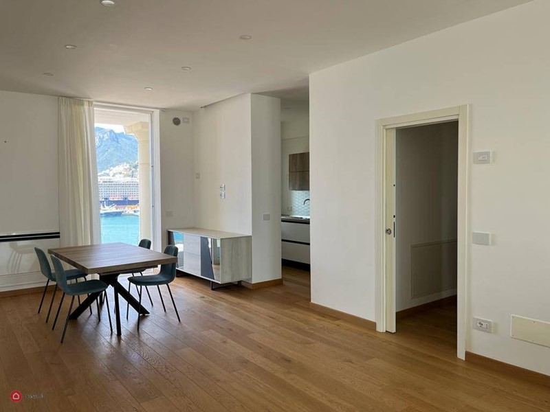 Affittasi Appartamento raffinato e signorile nell'edificio "Crescent" progettato dal noto architetto catalano Ricardo Bofill, al centro di Salerno con affaccio su Piazza della Libertà e Stazione Marittima. L'immobile è finemente arredato ed è composto da soggiorno con vetrate vista mare e divano letto, cucina corredata da tutti gli elettrodomestici top di gamma e sala da pranzo, due camere da letto e due bagni; a corredare lo spelndido appartamento, ci sono due terrazzi  di 30mq circa dove ci si può rilassare godendo della vista panoramica di tutto l'ampio Golfo di Salerno. Valore aggiunto è un box auto privato.