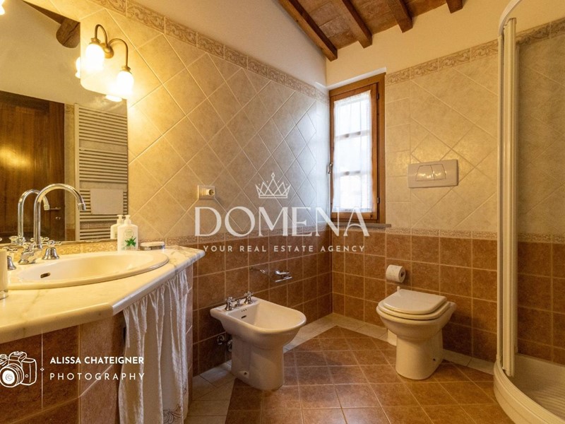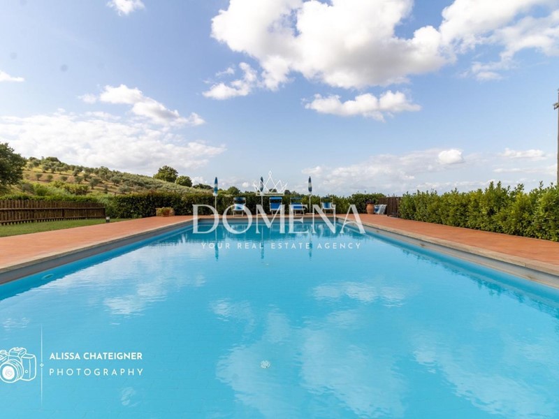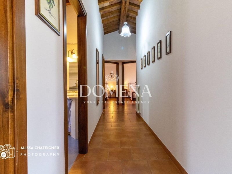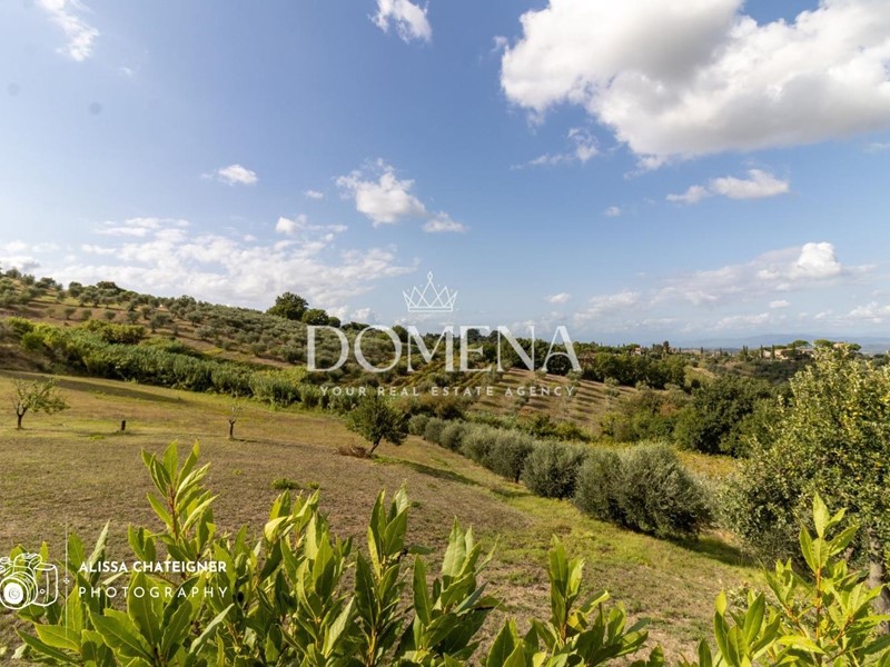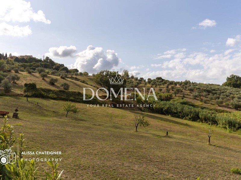 Completa la proprietà, il terreno agricolo di circa 6,3 ettari così suddivisi: seminativo arborato ( 8.500 mq. ), vigneto ( 3.000 mq. ), seminativo ( 17.640 mq. ), uliveto ( 27.960 mq. e circa 500 piante ), bosco (5.400 mq.) e frutteto (1.280 mq).